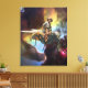 Uma obra de arte surreal de um caubói viajando pelo espaço