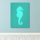 A forma de um cavalo marinho em turquesa num fundo verde-marinho agradável.