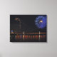 Um raio e 4 de julho os fogos de artifício vão para o céu com a Ponte Hudson de Médio ao fundo. Tirada do Caminho sobre o Rio Hudson.