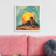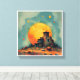 A mystical, ancient-looking house sits atop a small hill, surrounded by scattered rocks and patches of grass. Behind it, a vibrant, glowing orange and yellow celestial body dominates the sky, reminiscent of a sun or a planet, casting a warm glow over the scene. Concentric circles with cryptic symbols and runes radiate outward from the celestial body, creating an otherworldly, cosmic atmosphere. The artwork blends elements of fantasy and astronomy, evoking a sense of wonder and mystery about the universe and the secrets it holds.
