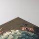 Esta trabalho de arte apresenta uma busta de mármore clássica de uma mulher, posicionada em perfil. O cabelo dela é enfeitado com flores vibrantes, passando de púrpura macia para blues mudados. Acima dela, um pássaro pequeno trepa delicadamente entre as flores, melhorando a atmosfera natural e serena. O fundo é escuro e texturizado, enfatizando o contraste entre o mármore pálido, as flores vívidas e a forma delicada do pássaro. A peça exumenta uma sensação romântica e vintage com um sutil senso de mistério.