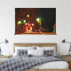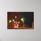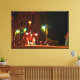 Fotografia da cena da natividade fora da igreja iluminada à noite.