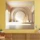 A serene architectural space defined by soft curves, layered arches, and a central circular element that anchors the composition. The arrangement of spheres in the foreground adds balance and sculptural clarity, while gentle light enhances the room’s calm geometry. This artwork brings a refined, contemporary presence to modern homes and professional interiors.