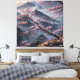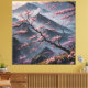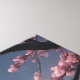 Serene landscape at dawn, surrounded by vibrant cherry blossoms,