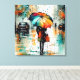 Um dia chuvoso na cidade não precisa ser sonhado: um guarda-chuva colorido pode mudar o mundo inteiro. Essa imagem com suas cores vibrantes e estilo impressionista moderno pode iluminar uma sala de estar ou um quarto comum e transformá-la em um espaço inesquecível. Criado com o uso de software de Inteligência Artificial.