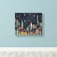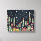 Uma cidade como uma ilustração no livro infantil. Casas coloridas sob um cheio de estrelas cintilantes. Cenário noturno pacífico. Design plana, duas dimensões, ideal como fundo, recorte, como uma cena perfeita. Criado com IA.