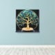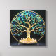 A tree of life design crafted from gold and various shades of blue and green gemstones, set within a circular frame.