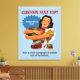 Mulher vestindo um avental robusto segurando frascos de vidro de vegetais. Cor de fundo personalizada. Texto personalizado superior e inferior. Bolha de intermitência personalizável e removível com texto personalizado.