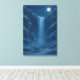 Uma capa de inverno impressionante de uma imensa queda de água congelada em cascata de médio suspensa, cercada por penhascos gelados em torre brilhando sob a luz suave da lua. Uma cena serena, mas poderosa que captura a beleza ainda grande da natureza congelada.