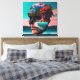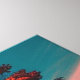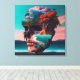 A skull head has been completely colored in an abstract style to bring you into the world of creativity and surreal design, in the style of photo-realistic landscapes, tropical landscapes, futuristic realism, pixelated realism, light crimson and sky-blue, surrealistic dreamscapes