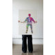 An artistic illustration of a female hockey player holding a stick, portrayed in bold and vibrant watercolor splashes. The energetic composition celebrates women in sports, blending strength, motion, and color in a modern expressive style. Perfect for hockey fans and lovers of dynamic sports art.
