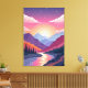 A modern artistic vector landscape featuring layered mountains and a flowing river under a dreamy pink, purple, and orange sunset. Perfect for wall art, digital prints, or home decor. This vibrant design captures the beauty of nature in a contemporary style.