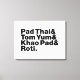 Tailandês: Pad Thai & Tom Yum & Khao Pad & Roti. Nossa loja tem uma seleção de excelentes de T-shirts, bonés, canecas e muito mais, tudo com designs inspirados no dialeto islâmico e na língua tailandesa.