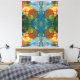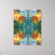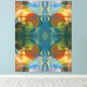 Cores vibrantes se misturam em um padrão abstrato simétrico com formas circulares e orgânicas. Uma mistura de azuis, laranjas e verdes cria um efeito visual dinâmico e harmonioso.