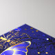 Composição de borboletas luxuosas de safira e joias de ouro em fundo azul texturizado.