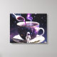 A miniature astronaut stands in a galaxy-themed teacup as purple liquid, resembling a nebula, is poured from a spoon. The scene is set against a dark background sprinkled with stars.
