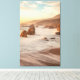 A imagem capta um pôr do sol respirador sobre uma robusta costa da Califórnia. O céu é uma mistura macia de rosa, laranja e azul, com nuvens espertas se somando à atmosfera etérea. O primeiro plano apresenta uma praia arenosa com ondas se cruzando contra a costa, criando um borrão mesmerizante de branco e marrom. Várias grandes formações rochosas saem da água, acrescentando à cena um senso de grandiosidade.
