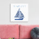 Um design de tipografia fofo com um design de veleiro azul indigo.