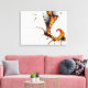 Um design de abstrato de arte de um mítico dragão voador em vermelho, ouro e preto, também deixando uma imagem de seu percurso de voo.