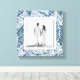 Feito para parecer dimensional, um padrão de plantas tropicais de aço azul e branco cria uma bela estrutura para sua foto favorita nesta canvas. **TIP: Se estiver usando uma placa quadrada, talvez seja necessário recortar sua foto em um quadrado ANTES de carregá-la para obter melhores resultados.