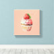 Impressão de tela com uma ilustração brilhante com um cupcake delicioso. Sorvete branco e um morango grande adoram este doce doce doce.