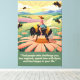 Motivational slogan Canvas Print featuring a cute image of a young lady riding on the back of a large bumblebee as the bee goes about pollinating flowers. The whole image is rendered in the iconic WPA style of the 1930s and 40s WPA National Park posters. If you like the WPA art style, then this 'Bee Happy', inspirational, motivational slogan canvas print is the one to put on your wall and read it daily to inspire you... to 'Bee Happy', at least.