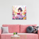 A sweet illustration of a little anime girl reading a book. She is surrounded by lovely nature with pink and purple flowers and musical notes floating above her. If your child likes anime, reading and music this wall art is perfect!