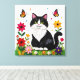Impressão Em Tela Cute Black and White Cat, Flowers and Butterflies
