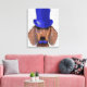 Impressão Em Tela Dachshund com Chapéu Azul e bigode Azul