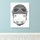 Este design apresenta um porco giro vestindo um capacete e óculos antigos.