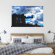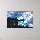 Mann mit Pfeil und Bogen em Silhouette mit Bäume im Hintergrund, blauem Himmel und Wolken