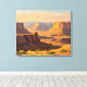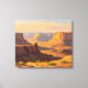 A representation on canvas in the impressionist pictorial style of desert canyons at sunset.