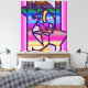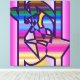 Abstract design inspired by cubist art through geometric shapes and planes that represent tears and pain in the face of a dramatic situation. Pink gradient background.