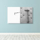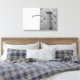Vista aproximada de uma parede branca vintage e um obturador de tempestade metálica em posição aberta. O gancho noturno está solto e pendura livremente, o gancho do dia está fixado no olho na parede. Imagem negra e branca, a alegoria do dia e da noite.