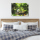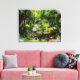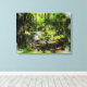 Eine alte morsche Holzbrücke em einem grünen Wald em Aquarell