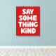 Esta design apresenta uma frase encorajando alguém a dizer algo gentil.