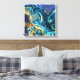 Dragon Rider art é uma pintura de fantasia dramática de Traci Van Wagoner apresentando um dragão verde azul em uma dramática pose voadora com um cavaleiro feiticeiro segurando um funcionarios alto nas costas com um cavaleiro-criança atrás. Qualquer um que ama dragões e arte de fantasia amará esta trabalho de arte.