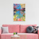 Uma libélula vibrante com asas escuras está rodeada por várias folhagens