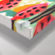 Duas veleiras e algodão II por Karen Fields. Possui duas veleiras flutuando na água cercada por flores e cascos coloridos.