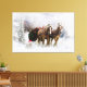 É o Natal que apresenta dois belos cavalos puxando um cheio de trenó de Natal e um doce filhote branco vestindo um chapéu de Papai Noel enquanto brinca na neve. Arte original de Shanina Conway.