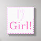 Celebre a chegada de um pequeno com este "É uma Garota!" Impressão de tela. Esta design apresenta o texto É uma Rapariga! em diferentes tons de rosa cercado por um padrão quic e moderno de círculo.