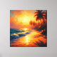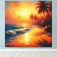 Uma pintura que captura a poesia de um pôr do sol tropical, onde o sol transforma o céu e o mar em um espetáculo dourado. Palmeiras balançam em sombras alaranjadas, e cada onda reflete a promessa de calma, calor e infinitas possibilidades.