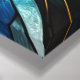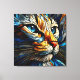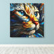 Um retrato da cabeça de um gato bonito é apresentado em um estilo de vidro manchado por abstrato. Sombras de azul, amarelo e turquesa tecem-se nesta composição artística, capturando o encanto felino em uma exibição mesmerizante e elegante.