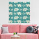 Impressão Em Tela Elephant Teal Caravan Pattern