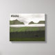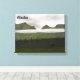 Uma pintura "primitiva" ou folclórica de coníferas e montanhas verdes num dia muito cinza com nuvens suspensas baixas. Um alce de touro (Alces Alces) no primeiro plano dá escala à cena. Leitura personalizável de texto, "Alaska" também é exibida.