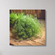 Esta impressão em tela retrata um maço de endro fresco colhido em uma mesa de madeira.