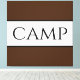 Esta elegante design náutica apresenta o texto "CAMP" da tipografia negra, elegante, moderna e grande, centrado em dentro a uma larga faixa central branca, destacada com listras pretas delgadas, adjacentes a listras escuras e ricas, coloridas e castanhas. Torne-o seu: as cores neste design podem ser alteradas editando o design. O texto também pode ser personalizado.
