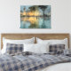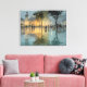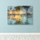 A peaceful small-town square glows under twilight after rain, with a warmly lit historic church and bell tower anchoring the scene. Shimmering puddles on the pavement reflect golden light, teal shadows, and soft blues while families, children, and townspeople gather in quiet joy amid tall trees and modest buildings. Loose, painterly strokes capture nostalgia, community warmth, and the gentle magic of everyday life at dusk—ideal for cozy living rooms, entryways, home offices, reading nooks, or as heartfelt gifts for anyone who cherishes small-town charm, family moments, faith-inspired serenity, or impressionist emotional landscapes.