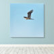 Heron azul excelente em voo apresentado na tela impressa. Ideia adorável para decoração da natureza.