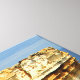 A costa sul da Austrália é formada por afloramentos de calcário macio que foram erodidos ao longo de 20 milhões de anos pelos ventos sopradores do tempestades oceano Sul. O EXCELENTE OCEAN CLIFFS retrata um dos maiores afloramentos de calcário ao longo da costa sul da Austrália conhecida como O Razorback, com as cores contrastantes do calcário marrom ouro e ondas oceânicas turquesas.
